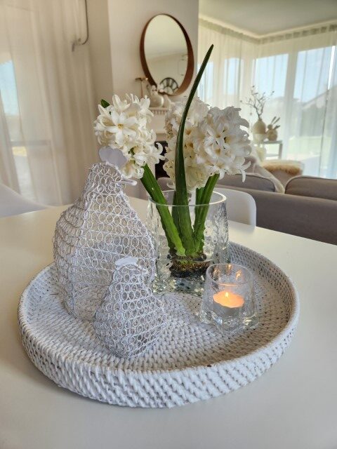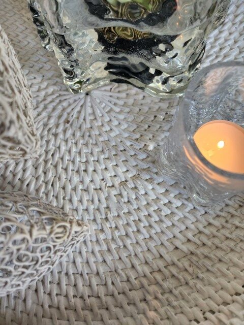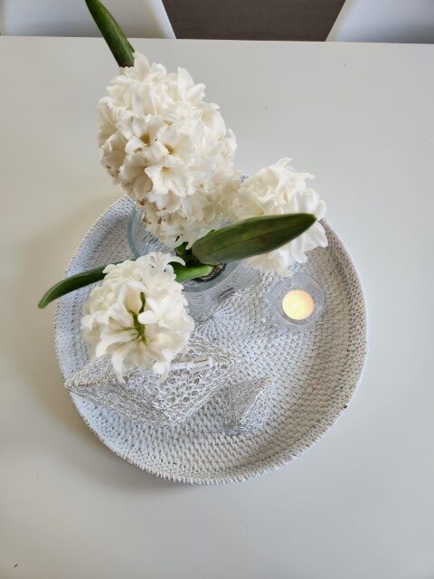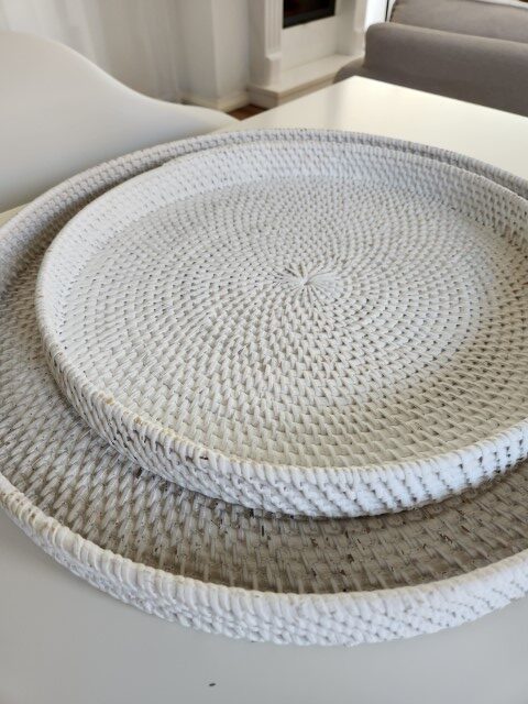 Ratan patrí stále medzi obľúbený prírodný materiál. Tento biely podnos je veľmi pevný a tak vám bude vynikajúcim pomocníkom pri servírovaní kávy a občerstvenia Vašim hosťom v záhrade alebo na terase. Okrem toho, že je praktickým pomocníkom pri servírovaní, bude v kuchyni krásnym štýlovým doplnkom. Pokiaľ ho nebudete momentálne využívať na servírovanie, môžete ho nadekorovať podľa ročného obdobia a bude Vám iste robiť radosť. Rovnako ho môžete jednoduchým spôsobom, pomocou klinčeka, zavesiť na stenu. Vybrať si môžete z dvoch veľkostí M 30 x 30 x 5 cm a L 50 x 50 x 5 cm.