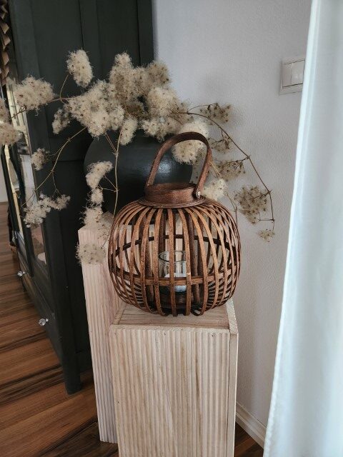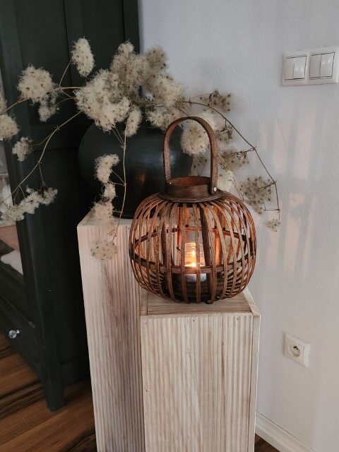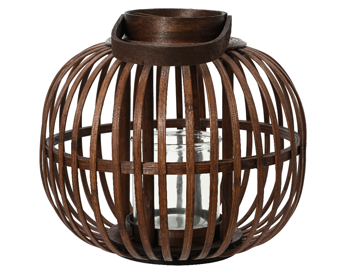 Výrobky z bambusu sú veľmi krásnym prírodným doplnkom . Tento svietnik z bambusu v tmavom prevedení bude ozdobou vo Vašom interiéri. Prírodný materiál necháva vyniknúť jednoduchému ale prepracovanému pleteniu. Vo vnútri svietnika je sklenený kryt na sviečku. Svietnik má ucho na zavesenie a ľahké premiestňovanie. Rozmery 29 x 26 cm.