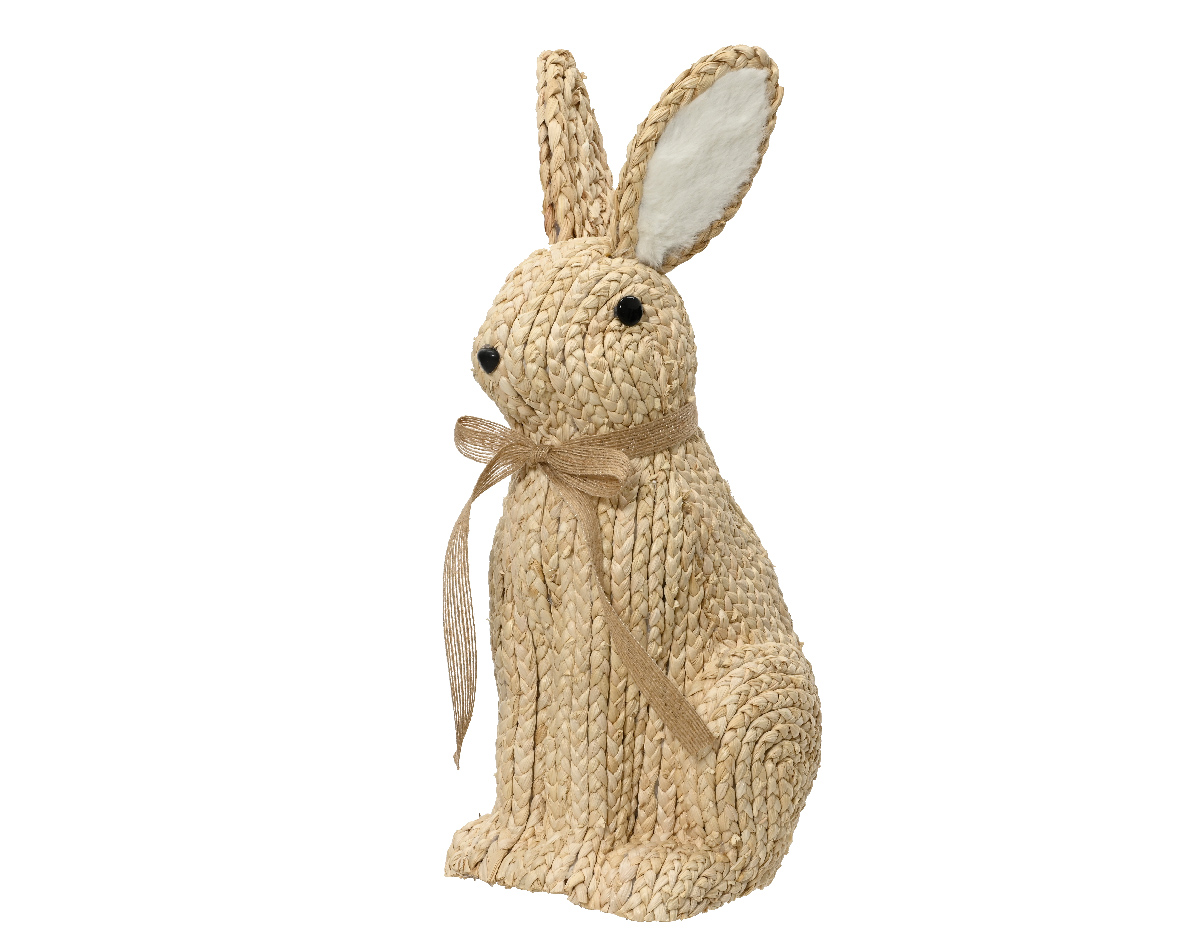 Zajačik z kukuričných listov bude krásnou prírodnou dekoráciou Vášho interiéru, rovnako však môže vítať Vašich hostí pri vchodových dverách na krytom mieste. Vybrať si môžete z dvoch veľkostí. Rozmery zajačika sú M 12 x 14 x 23 cm a L 16 x 19 x 41 cm.